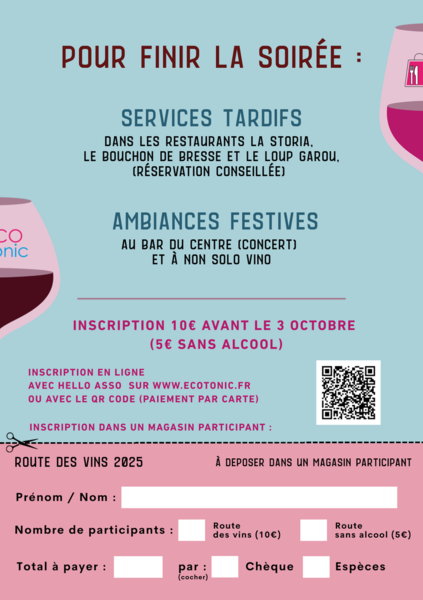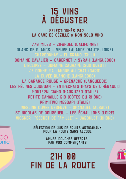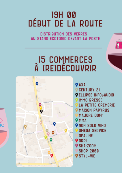Venez-vous inscrire pour une soirée dégustation dans plusieurs commerces de Montrevel ou vous pouvez déguster des vins différents entre 19 H et 21H.