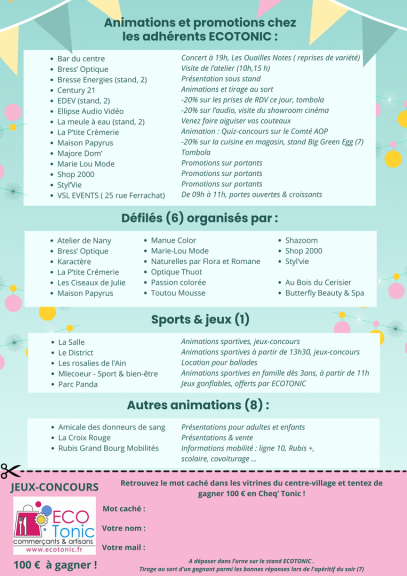 Le 14 juin, à l’occasion des Festitionics à Montrevel, vos commerçants locaux se mobilisent !