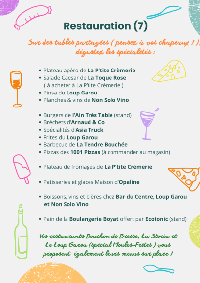 Vos commerçants vous proposent également de nombreuses animations commerciales et un large choix de restauration sur place !